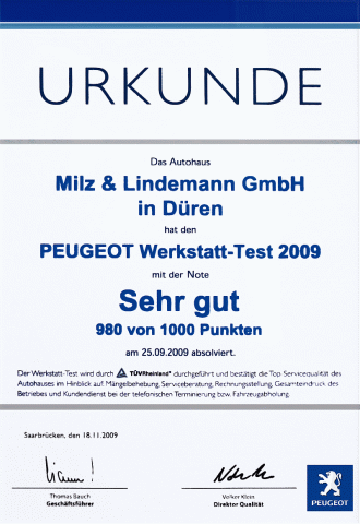 2004 Vertragsunterzeichnung mit PEUGEOT und CITROËN